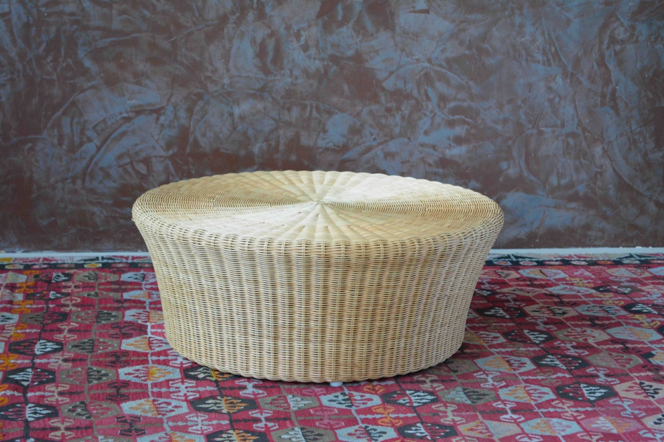 Tavolino in midollino naturale intrecciato a mano.
