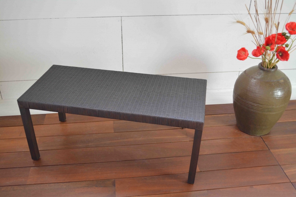 Struttura in mogano massiccio tinto moka. Intreccio di rattan corteccia tinta moka.